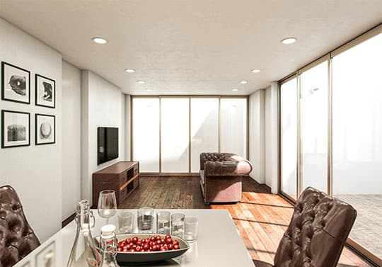 SIMPLENOTE渋川スタジオの基本性能は、耐震等級3、断熱性能を示すUA値は0.56以下、気密を示すC値は0.2とご安心いただける内容となっています。文字通り、デザインと性能をバランスよくご提案できる住宅となっています。